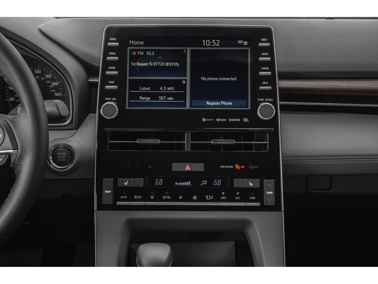 - Radio: Audio Plus -inc: 8 speakers, 9" touch screen, audio jack, USB 2.0 port w/iPod connectivity and control, Bluetooth® wireless technology w/hands-free phone capability, music streaming and voice recognition, Amazon Alexa in-car app, Apple CarPlay, Scout GPS Link w/3-year trial, Siri Eyes Free, HD Radio, Entune App Suite, SiriusXM satellite radio w/3-month all-access trial, Entune 3.0 Toyota Connected Services, Safety Connect w/3-year trial, Service Connect w/3-year trial, Remote Connect w/6-month trial and Wi-Fi Connect up to 2GB w/6-month trial