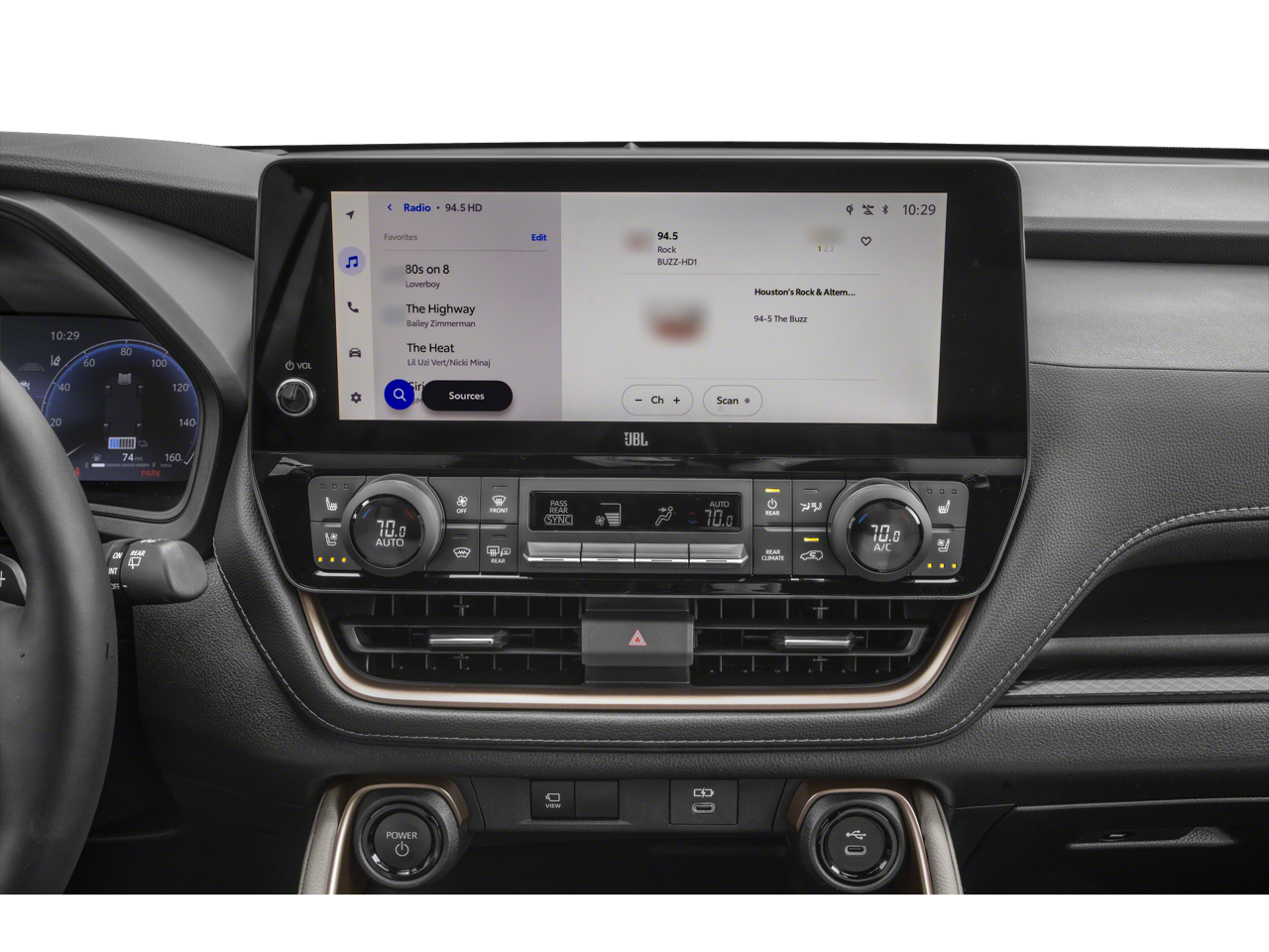- Radio: 12.3" Toyota Audio Multimedia w/JBL Premium -inc: touchscreen, subwoofer and amplifier, wireless Apple CarPlay and Android Auto compatibility, SiriusXM w/3-month trial subscription (see toyota.com/audio-multimedia for details) and 11 speakers